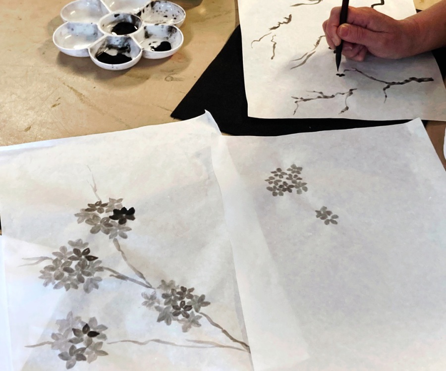 Midori explore la calligraphie et le sumi-e comme langage culturel.