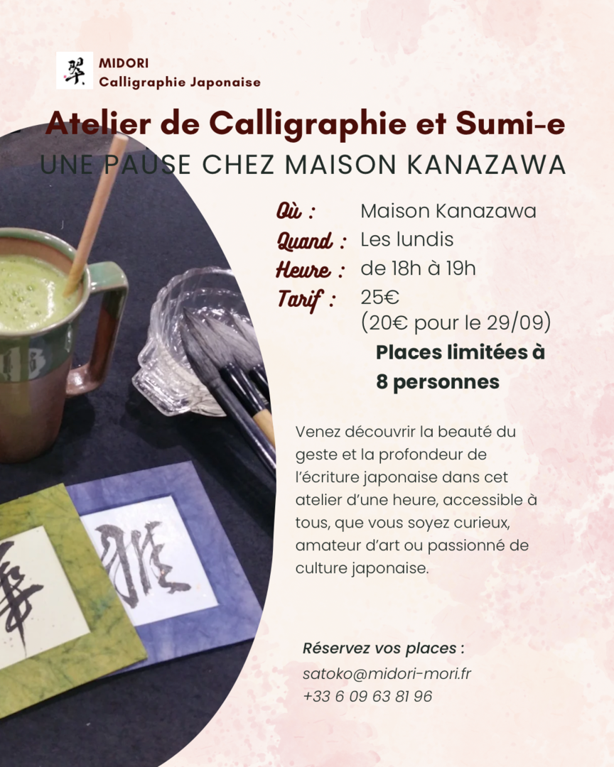 Apprenez les bases de la calligraphie japonaise et de la peinture à l'encre de Chine jusqu’à la création d’une œuvre complète.